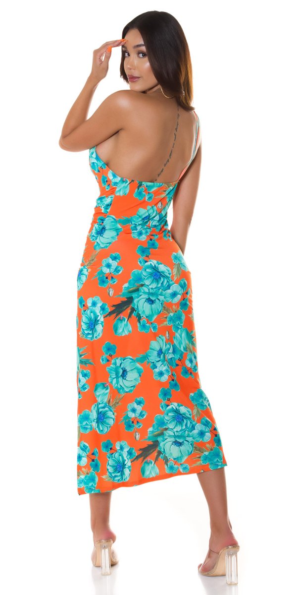 Abito lungo Estivo con stampa Floreale AL245 Arancio