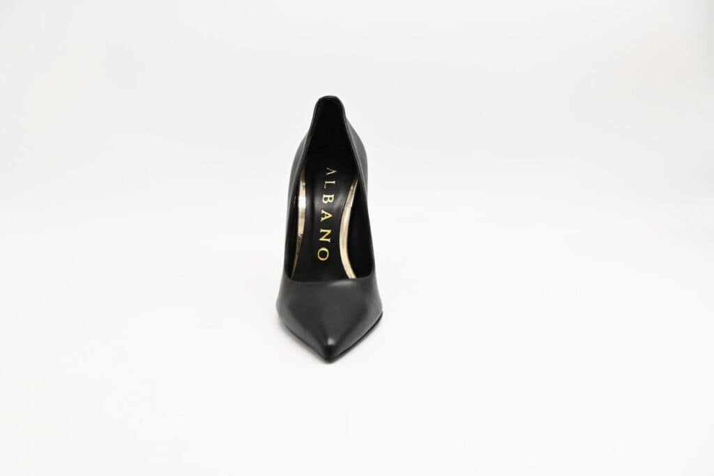 Decollete in vitello. Fondo in cuoio e gomma antiscivolo. Tacco 10cm.