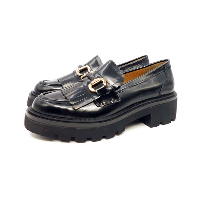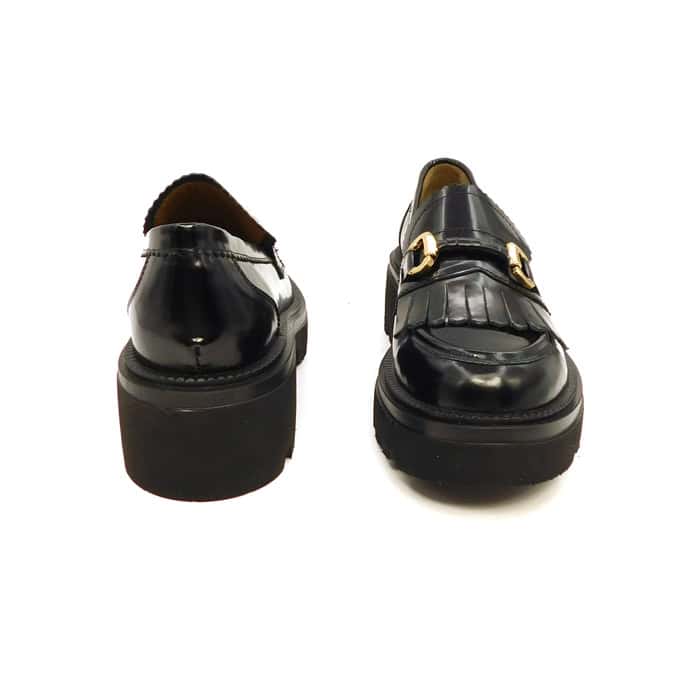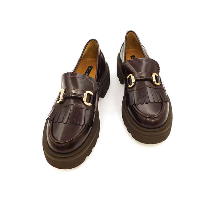 Mocassino in vitello abrasivato con morsetto e frangia. Interno in pelle. Fondo in gomma.