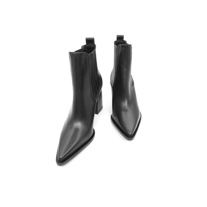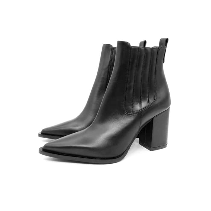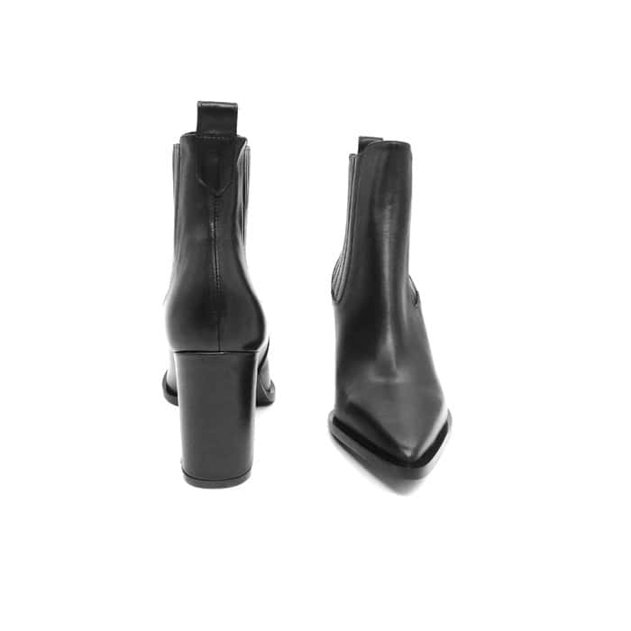Tronchetto in vitello nero con elastici. Interno in pelle. Tacco 8 cm.