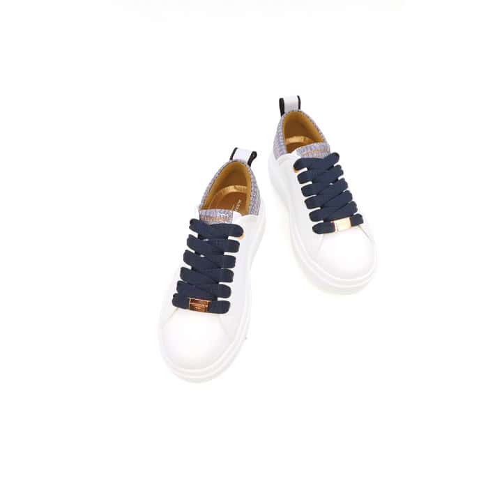 Sneaker con tomaia in Free Bioโข bianca e dettagli glitter. Dettagli e fodera in RePET. Lacci in cotone. Suola interna in ReFoam. Suola in PU. Suola interna removibile. Suola di 45 mm. Suola interna di 10 mm.