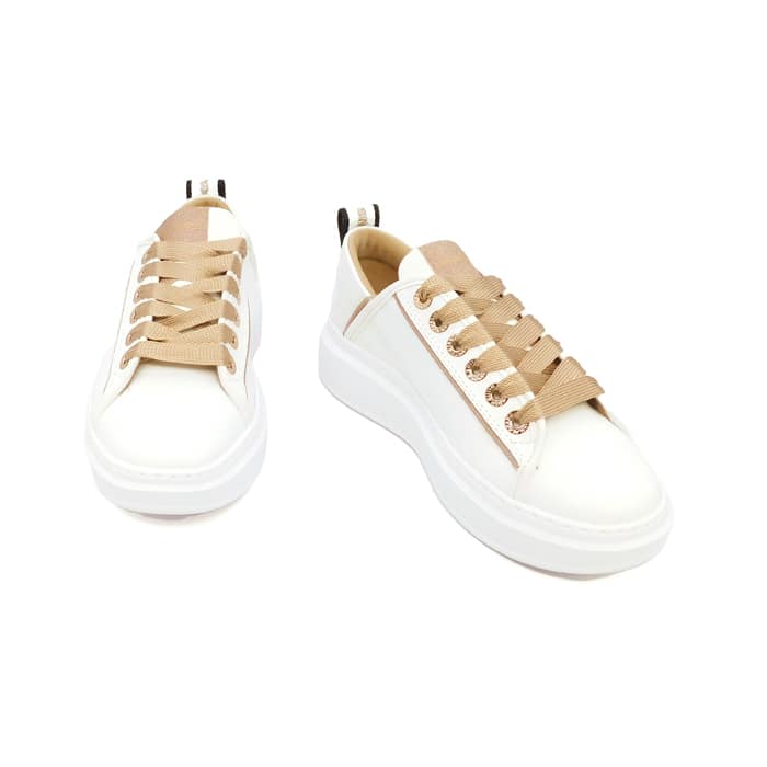 Sneaker con tomaia in pelle bianca. Logo a lato e nel loop sul retro. Talloncino vernice bianca. Soletta interna removibile. Suola di 40 mm. Soletta interna di 10 mm. Made in Italy.