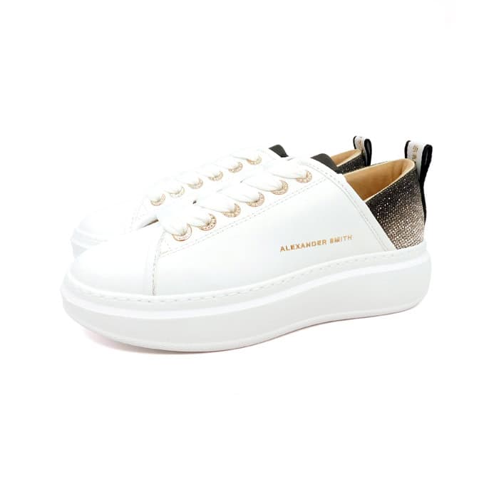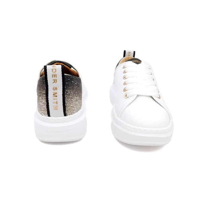 Sneaker con tomaia in pelle. Logo a lato e nel loop sul retro. Soletta interna removibile. Suola di 40 mm. Soletta interna di 10 mm. Applicazioni pietre sul talloncino.