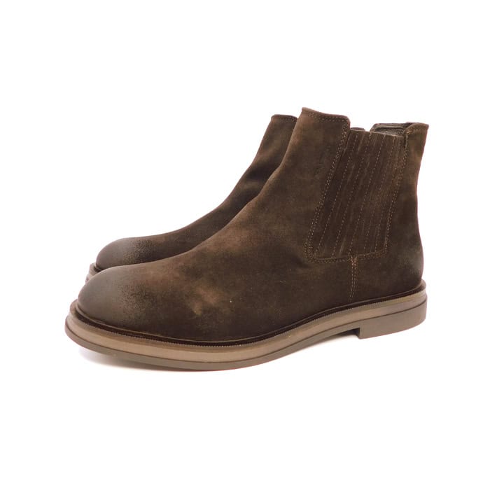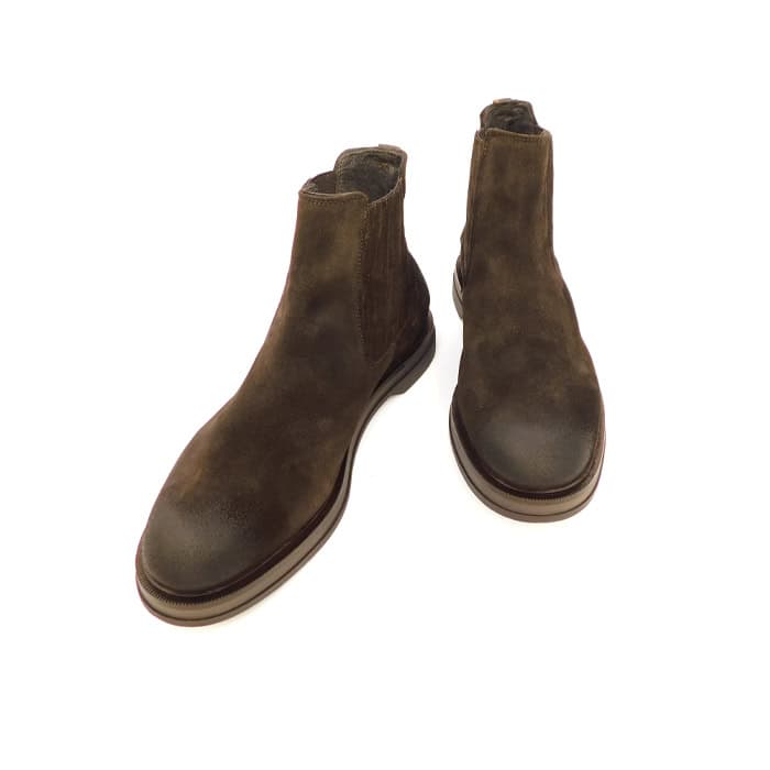 Stivaletto Chelsea in camoscio testa di moro ed elastici. Interno in pelle. Fondo in gomma.