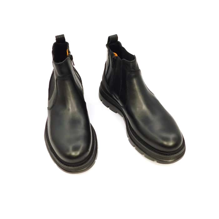 Beatles in vitello nero monocolore. Fondo carrarmato in gomma.