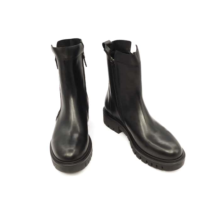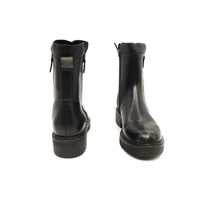 Tronchetto biker in vitello nero. Doppia zip. Interno in pelle. Fondo in gomma.