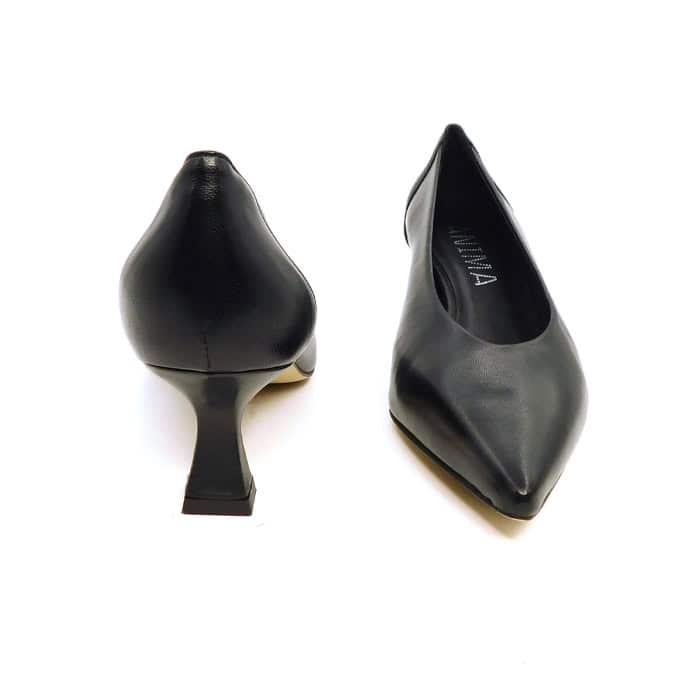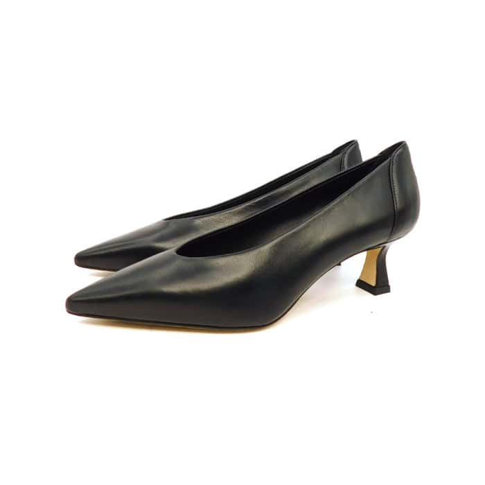 Décolleté in vitello nero. Interno in pelle. Fondo in cuoio con mezza piantina in gomma. Tacco 5 cm. Made in Italy.