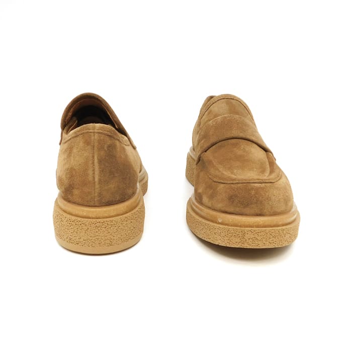 Mocassino in camoscio tortora. Interno in pelle. Fondo in gomma tono su tono.