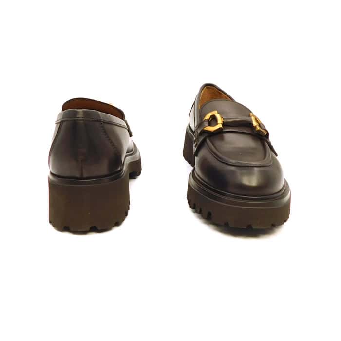 Mocassino in vitello con morsetto. Interno in pelle. Fondo carrarmato in gomma.