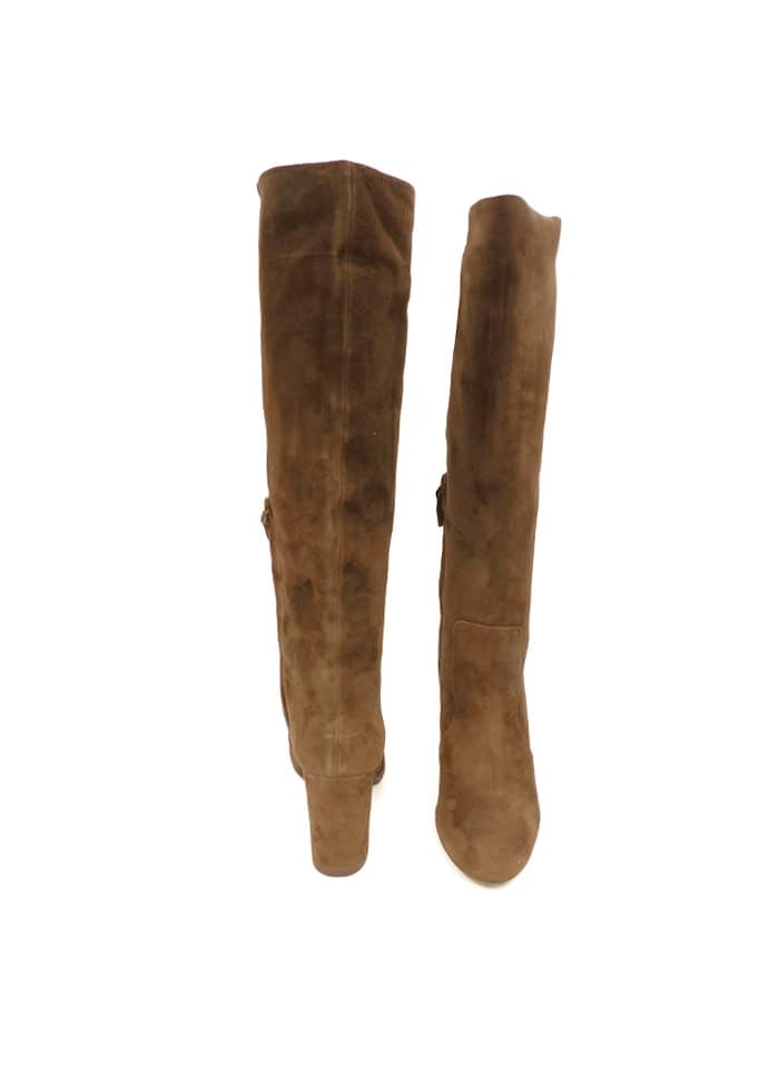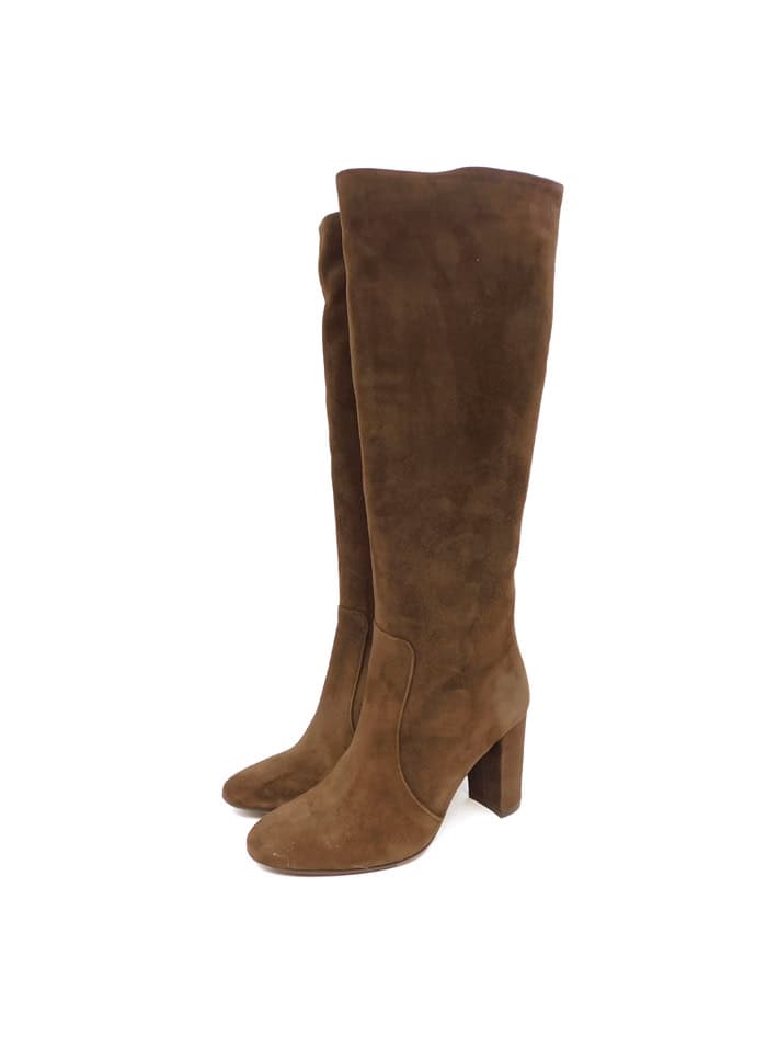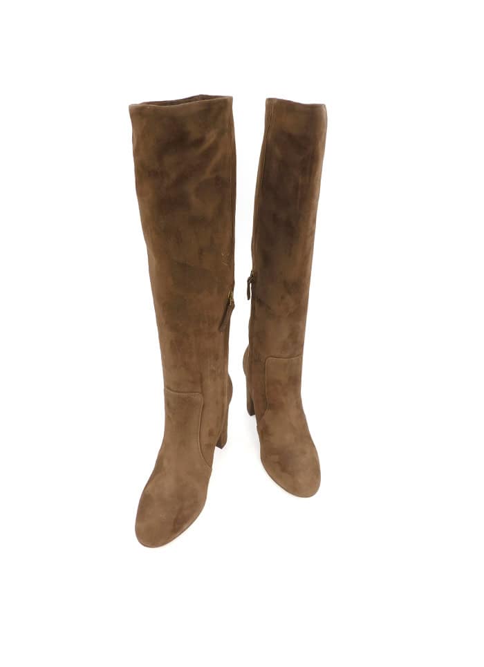 Stivale in camoscio marrone. Mezza zip laterale. Interno in pelle. Tacco 9 cm. Made in Italy.