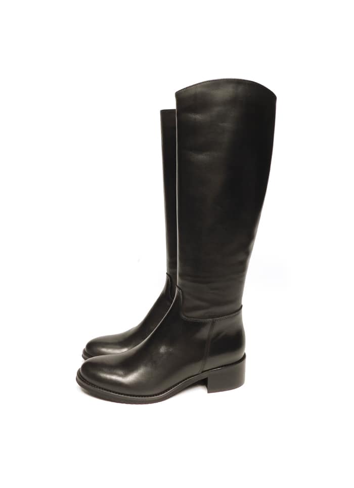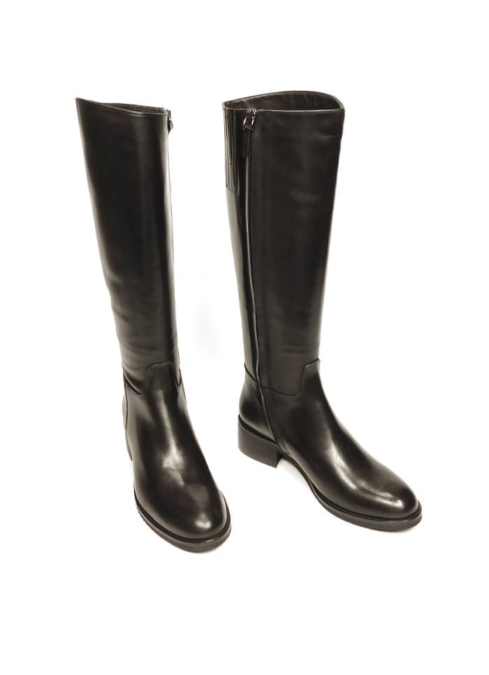 Stivale in vitello nero con zip interna. Interno in pelle. Tacco 5 cm.