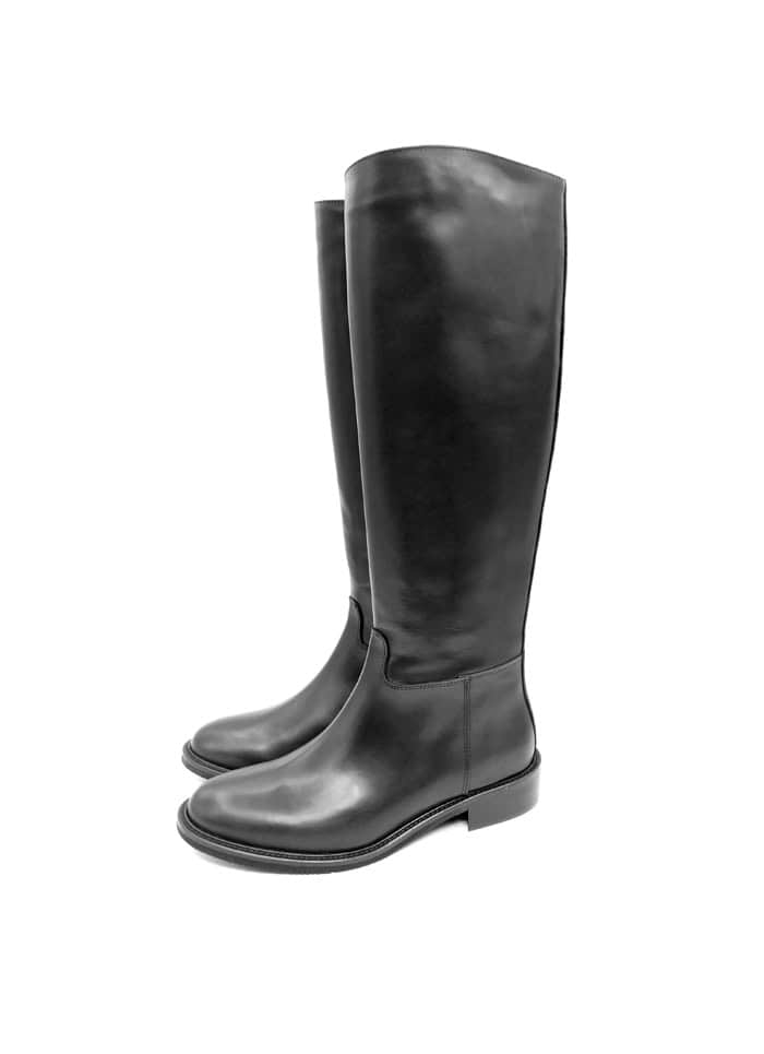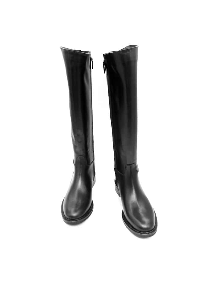 Stivale cavallerizzo in vitello nero. Interno in pelle. Tacco 3 cm.