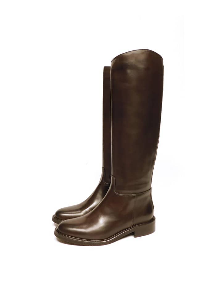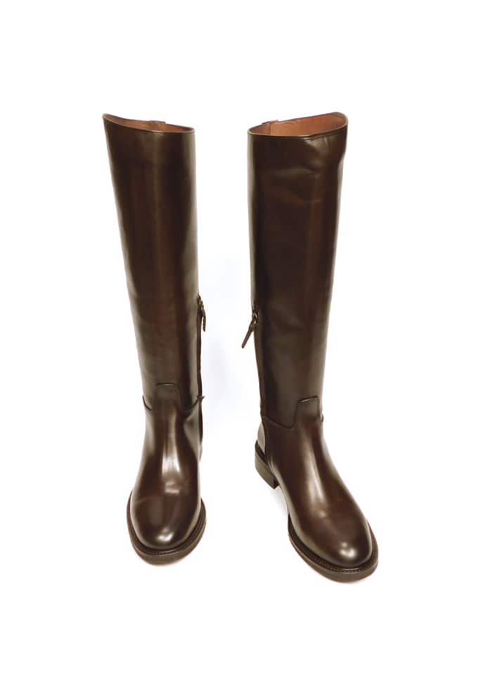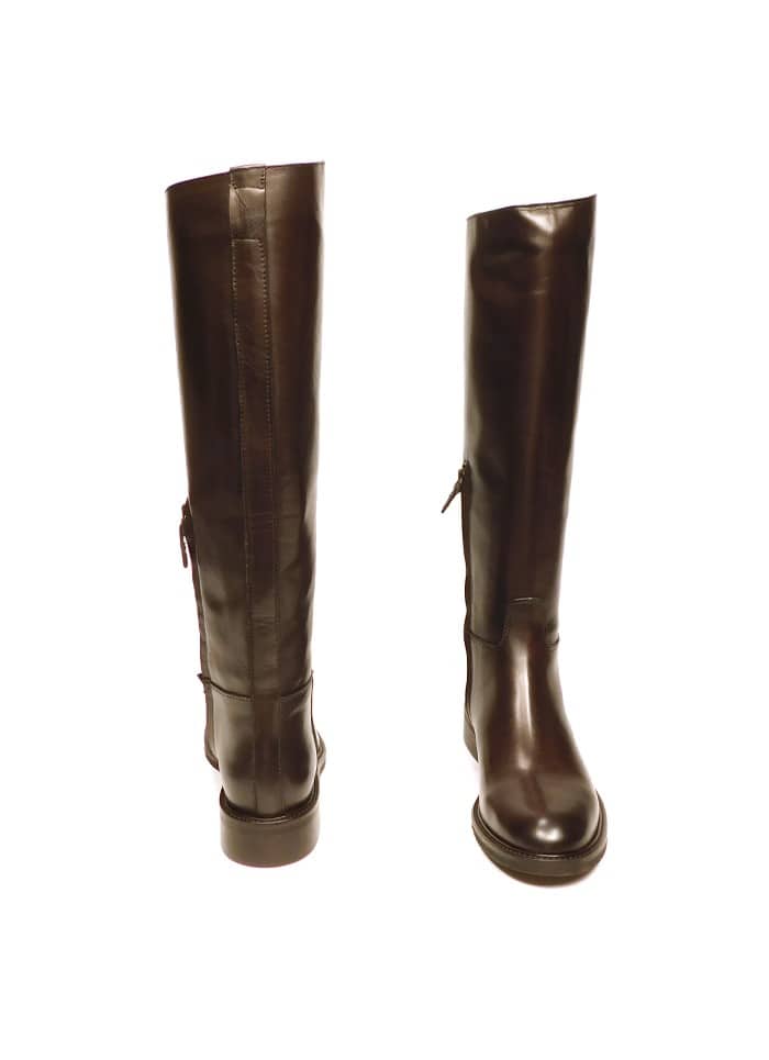 Stivale in vitello testa di moro con gambale alto. Mezza zip. Interno in pelle. Tacco 3 cm.