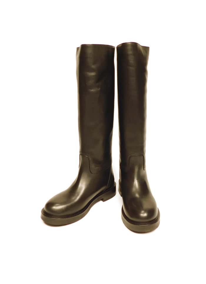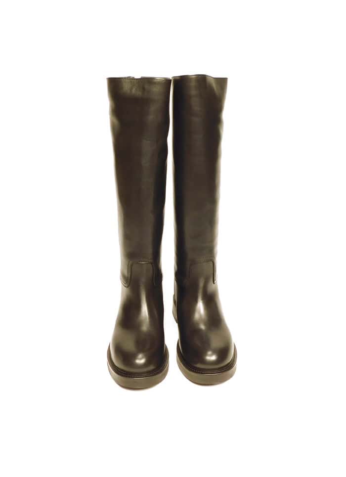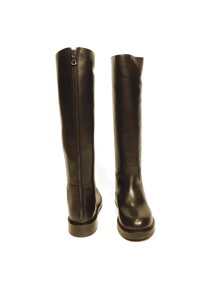 Stivale fondo gomma 2CM. Interno in vitello. Allacciatura con zip posteriore. Tomaiaย in vitello NERO opaco.