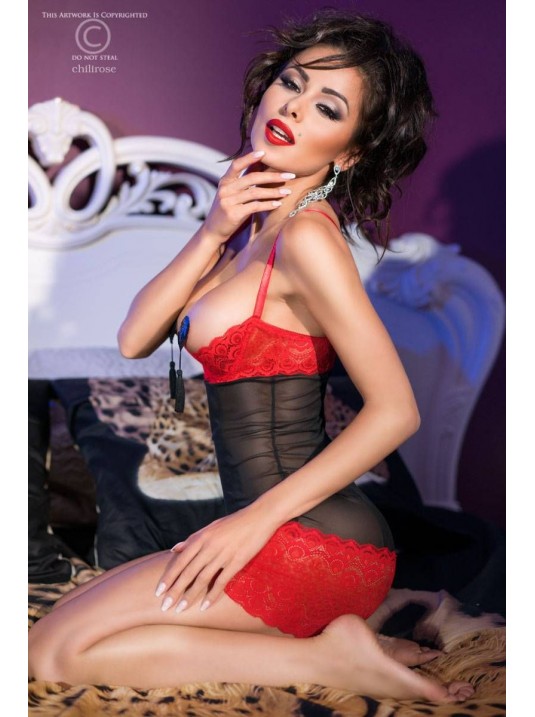 Chemise in tulle e pizzo conย perizoma coordinato.ย ย ESCLUSO di copri-capezzoli.