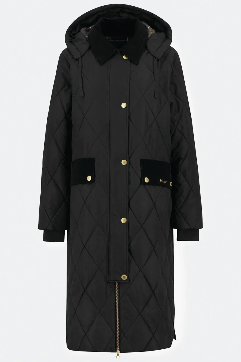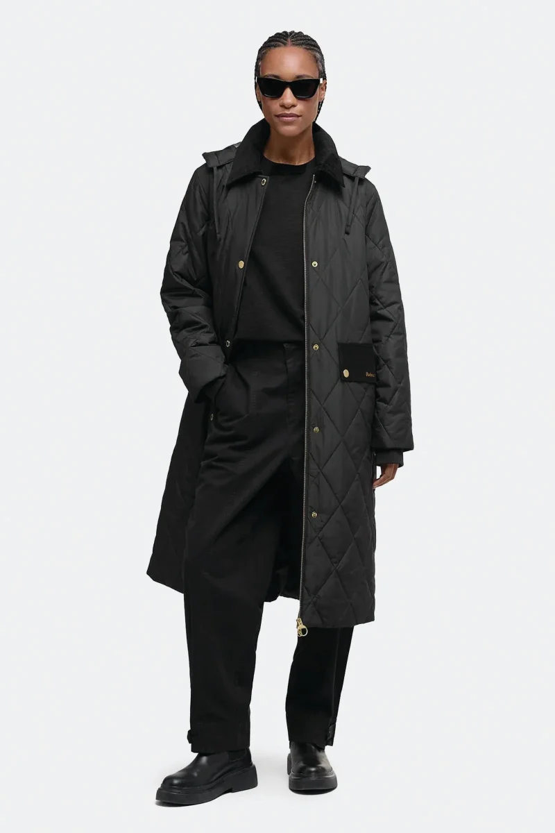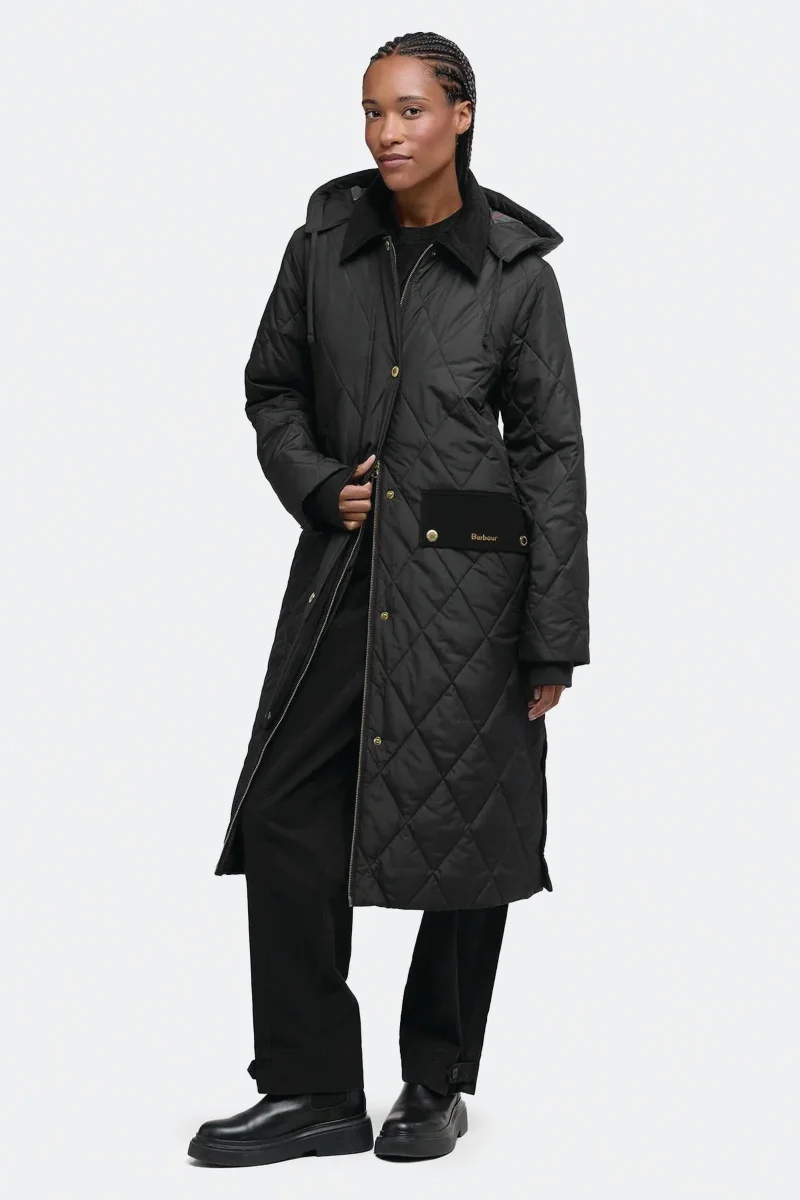 La giacca trapuntata Meredith di Barbour presenta un taglio lungo e una trapuntatura a rombi da 10 cm, per offrirti il massimo del calore e del comfort. Il capo รจ reso ancora piรน funzionale dal cappuccio rimovibile, dai maxi polsini a costine che trattengono il calore e da una pratica chiusura con bottoni a pressione. Il cappuccio e la fodera rivestiti in tartan rendono omaggio allโ€™heritage classico di Barbour.