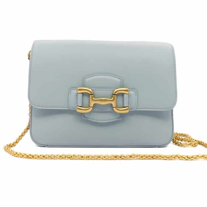 Borsa in vitello con morsetto dorato. Manico removibile. Tracolla opzionabile in catena metallica.