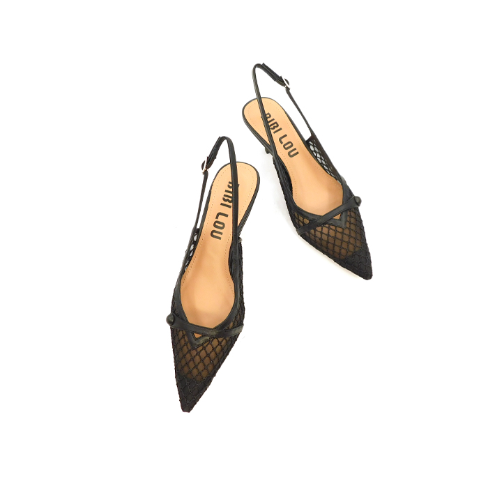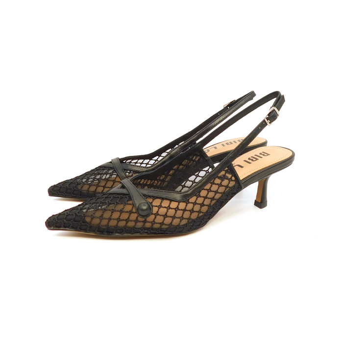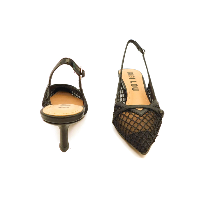 Chanel in rete nera. Cinturino regolabile. Interno in pelle. Tacco 5,5 cm. Modello: Xaia.