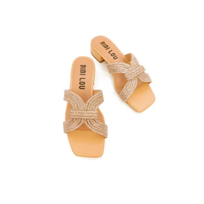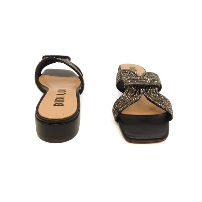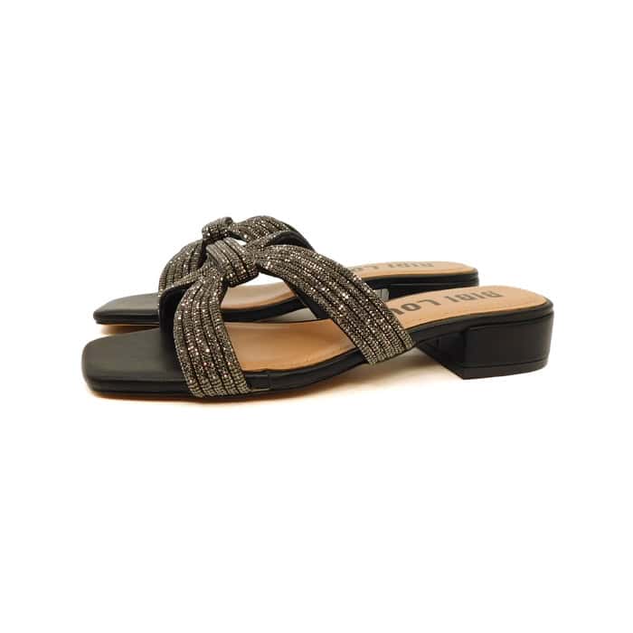 Ciabatta con fascia incrociata con strass. Interno in pelle. Tacco 2 cm.