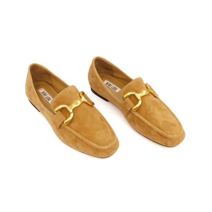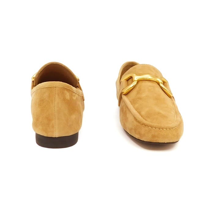 Mocassino in camoscio con morsetto dorato. Interno in pelle. Fondo antiscivolo.