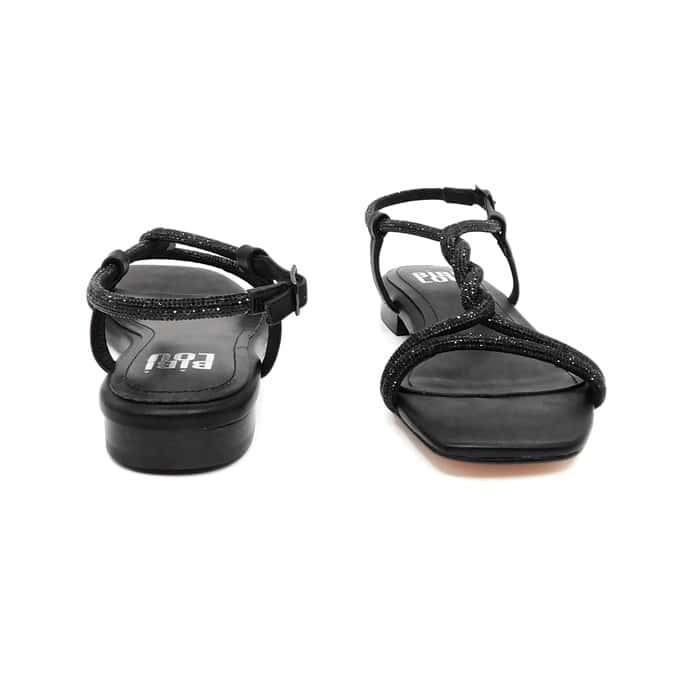 Sandalo nero con treccia di strass. Cinturini regolabile alla caviglia. Interno in pelle. Modello: Tasha.