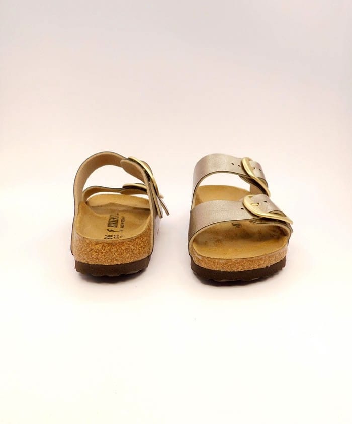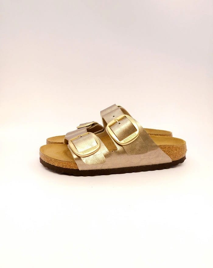 Ciabatta in vitello oro. Interno in camoscio. Fondo in sughero e gomma.