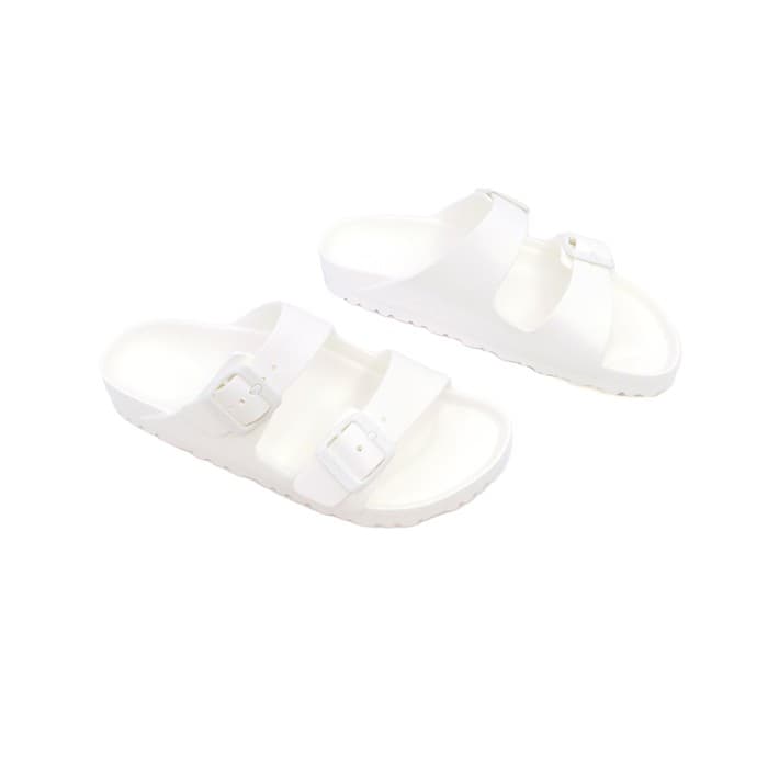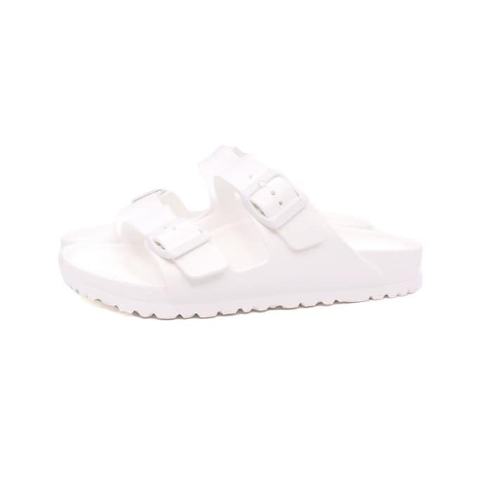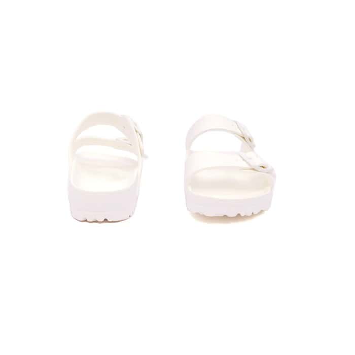 Ciabatta in gomma EVA bianca. Il materiale plastico EVA non ha odore o sostanze inquinanti, รจ molto leggero, altamente elastico, impermeabile e dermoaffine. Il plantare ha una forma anatomica.