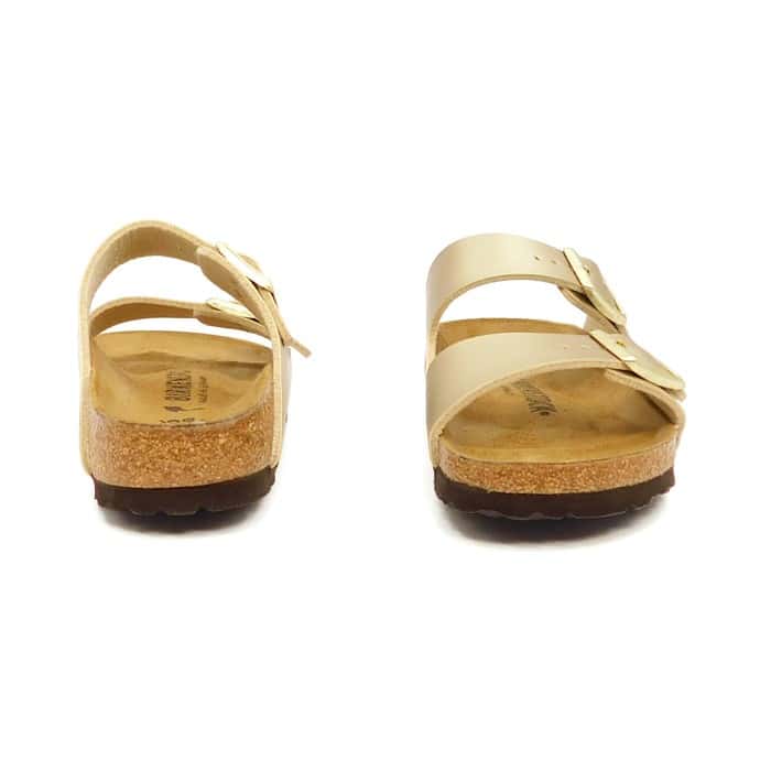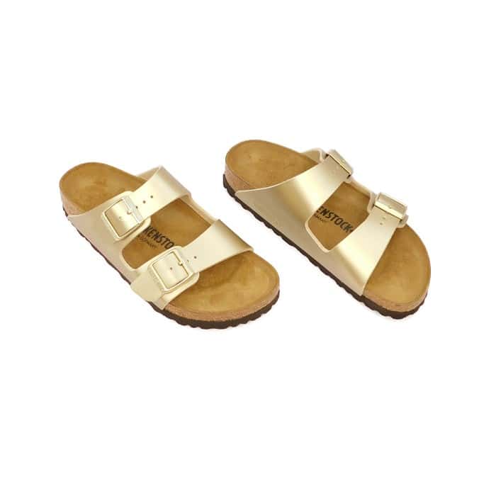 Ciabatta in Birko-Florยฎ oro. Plantare anatomico in sughero e lattice. Sottopiede: pelle scamosciata. Suola: EVA.