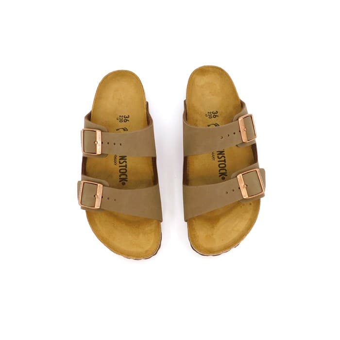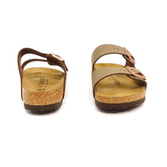 Ciabatta in Birko-Florยฎ mocca. Plantare anatomico in sughero e lattice. Sottopiede: pelle scamosciata. Suola: EVA. Pianta Regular.