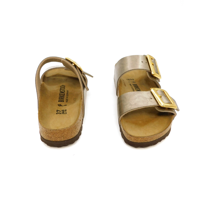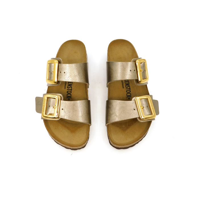 Ciabatta con tomaia: Birko-Florยฎ con finitura brillante. Plantare anatomico in sughero e lattice. Sottopiede: pelle scamosciata. Suola: EVA. Dettagli: due cinturini con fibbie ad ardiglione in metallo regolabili individualmente. โMade in Germanyโ.