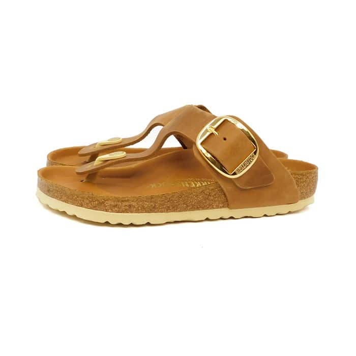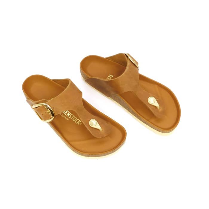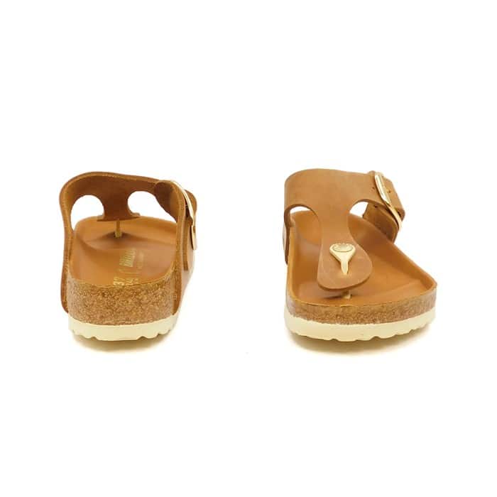 Ciabatta infradito in pelle nabuk oliata cuoio con fibbia ad ardiglione in metallo dorato. Plantare anatomico in sughero e lattice semi-exquisit rivestito in pelle liscia. Suola in gomma EVA.