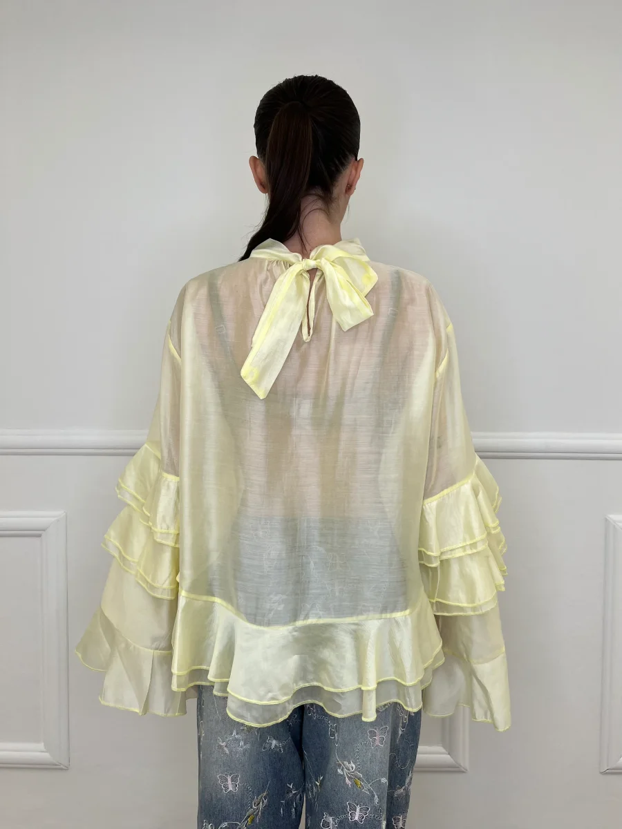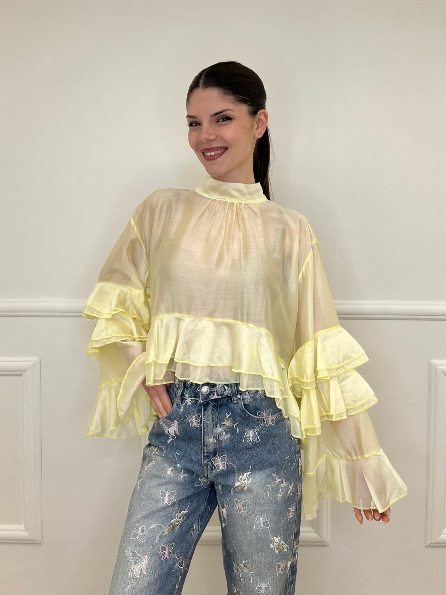 Blusa in Tencel a Balze 6108 Giallo