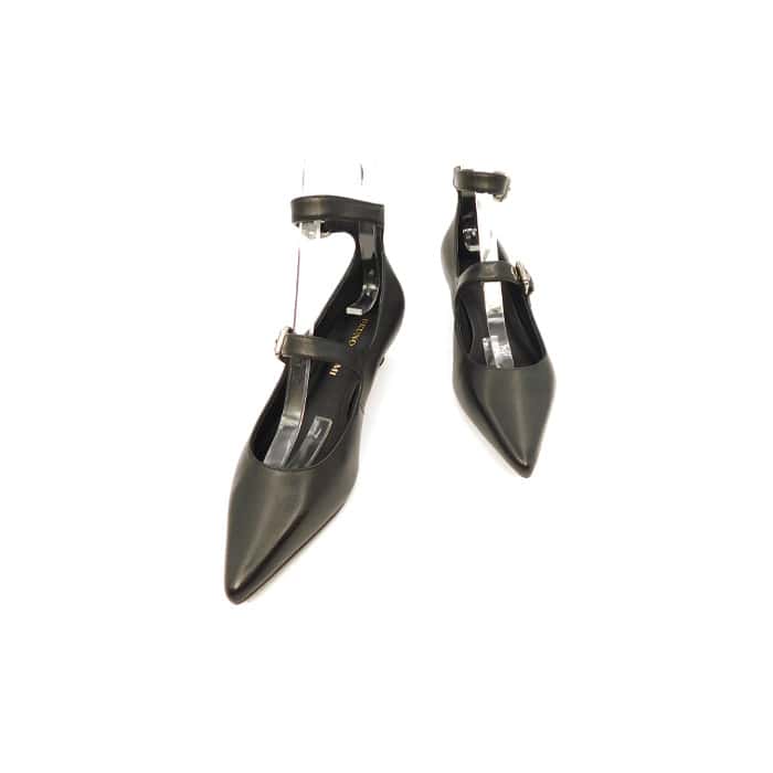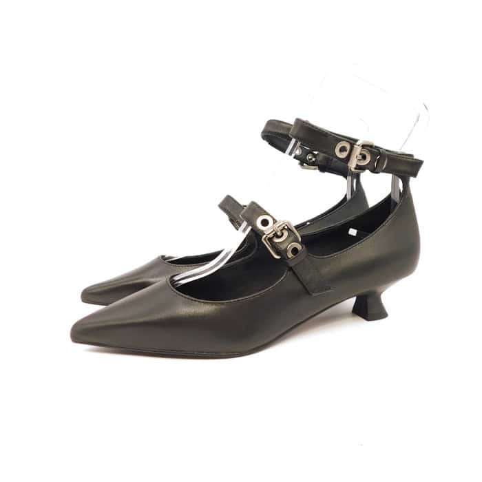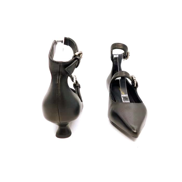 Décolleté in pelle nera con cinturini. Interno in pelle. Tacco 2 cm. Made in Italy.