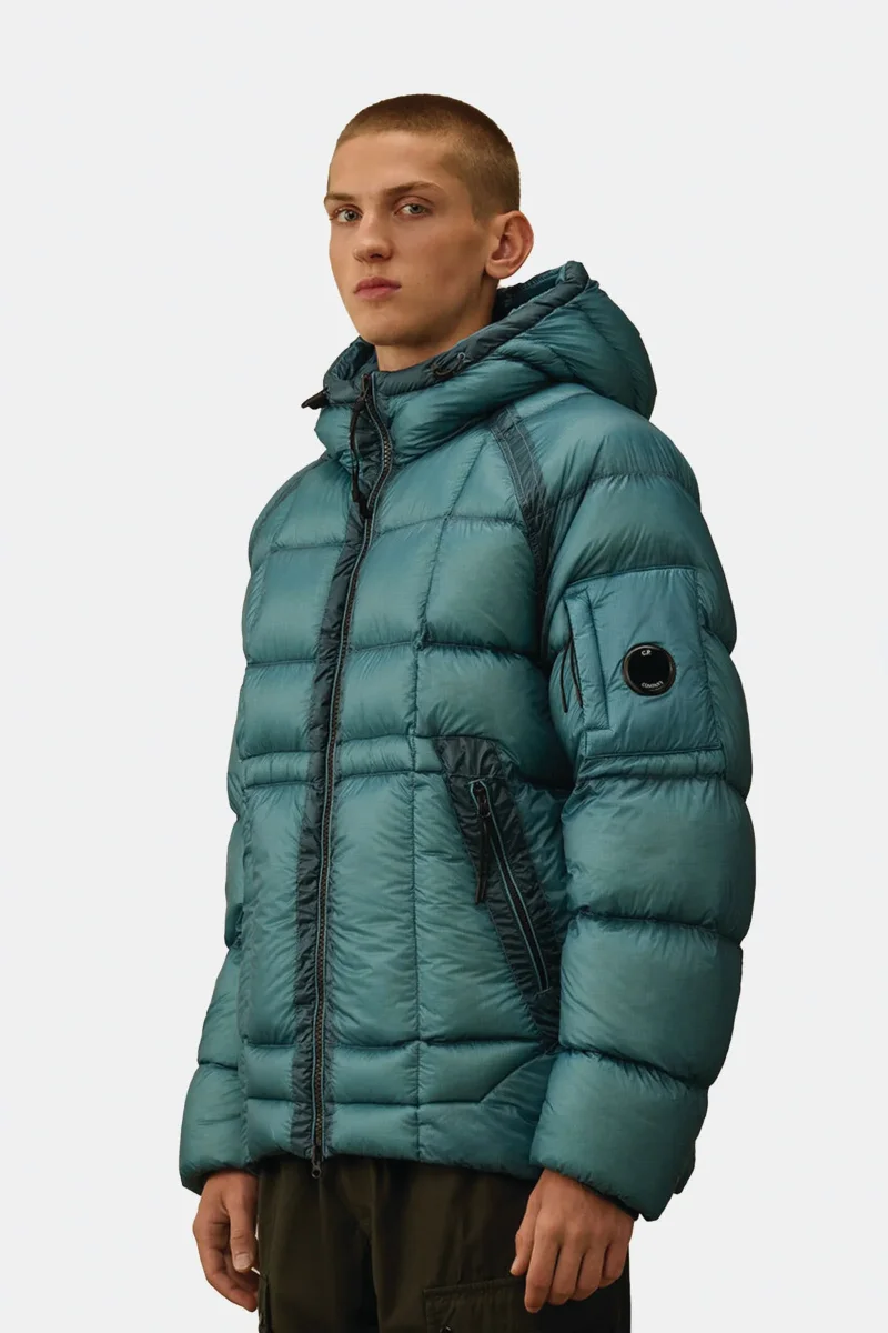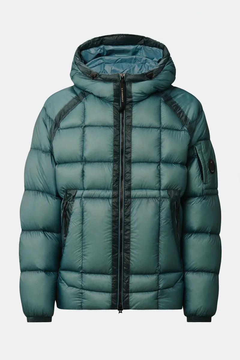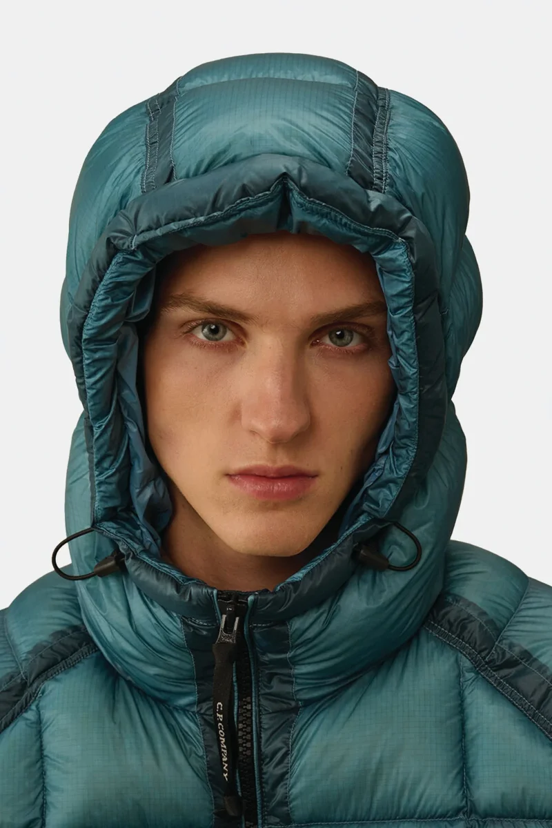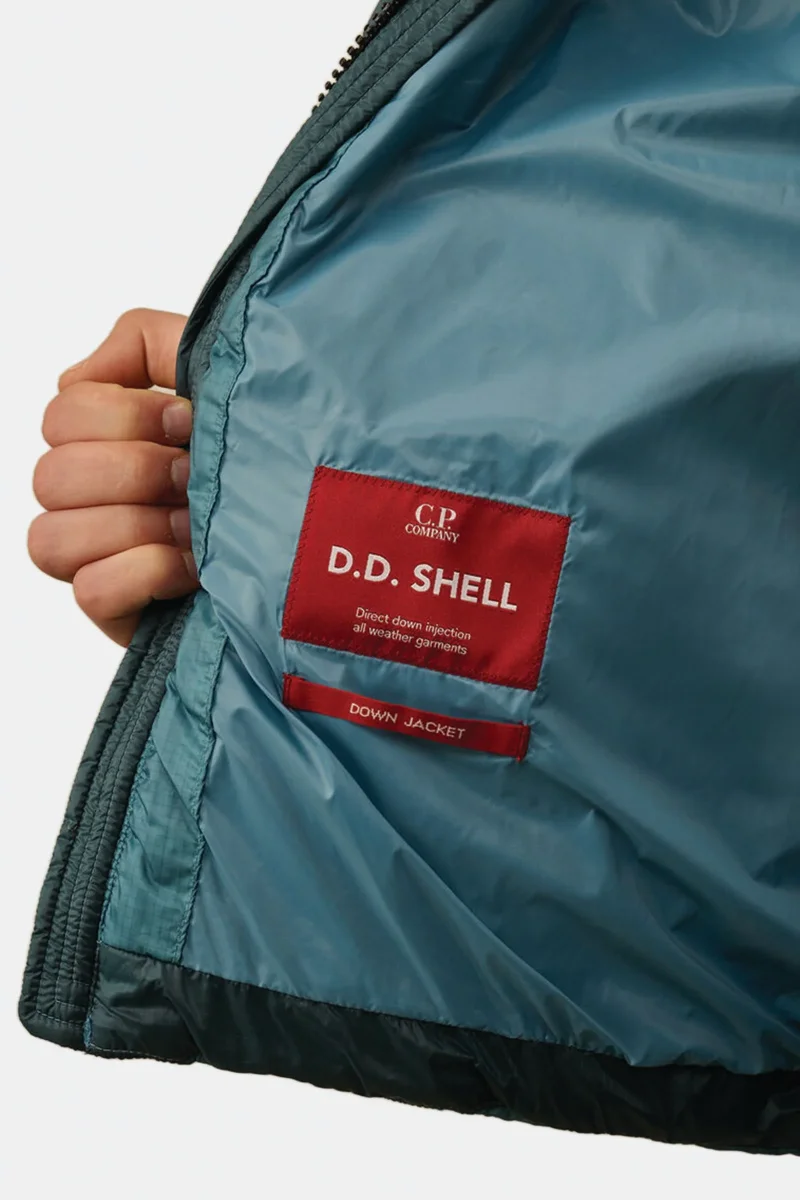 Piumino con cappuccio realizzato in D.D. Shell, un nylon micro-ripstop opaco 7 denari. La leggerezza e la trasparenza del materiale mette in risalto la costruzione, mentre il processo di iniezione a piuma diretta assicura un isolamento ideale. Il modello presenta cappuccio regolabile, chiusura full zip a doppio cursore, tasche laterali con zip, cuciture a contrasto, polsini elasticizzati, fondo regolabile con coulisse e lโiconica Lente di C.P. Company. Regular fit.