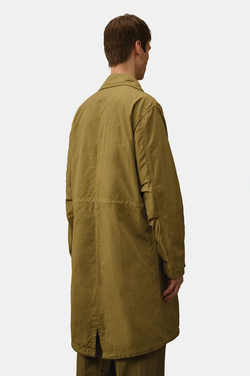 Car coat fishtail con gilet integrato realizzato in Twill, ottenuto dallโintreccio di due filati nylon taslan. Il cappotto presenta un colletto classico con linguetta e bottone, chiusura con bottoni nascosti e bottoni automatici, tasche laterali applicate con patta e bottoni automatici e un taschino con lโiconica Lente di C.P. Company sulla manica. La vita regolabile […]