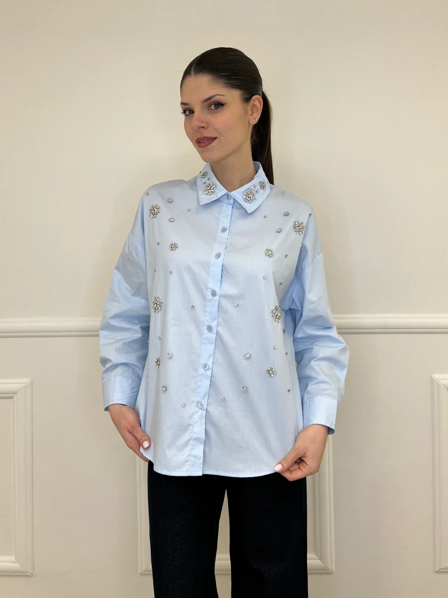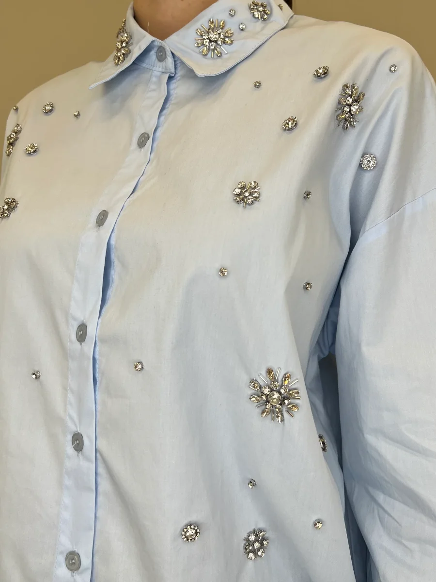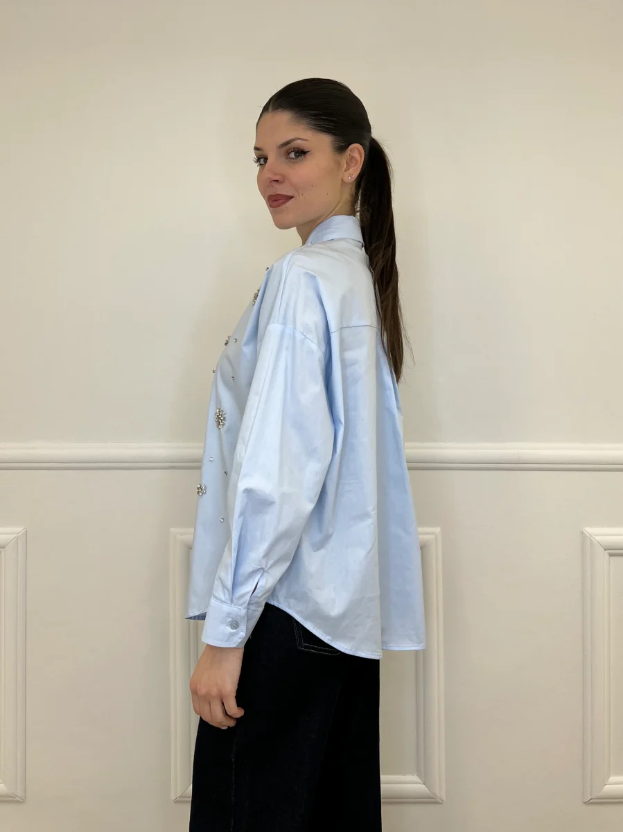 Camicia oversize in popeline di cotone con impreziosita da applicazioni cristalli.