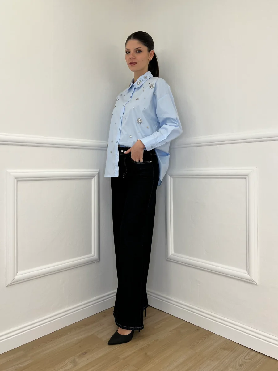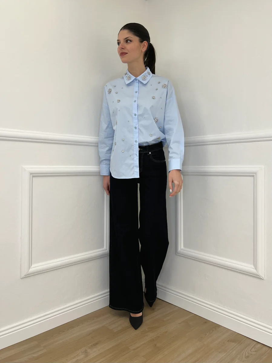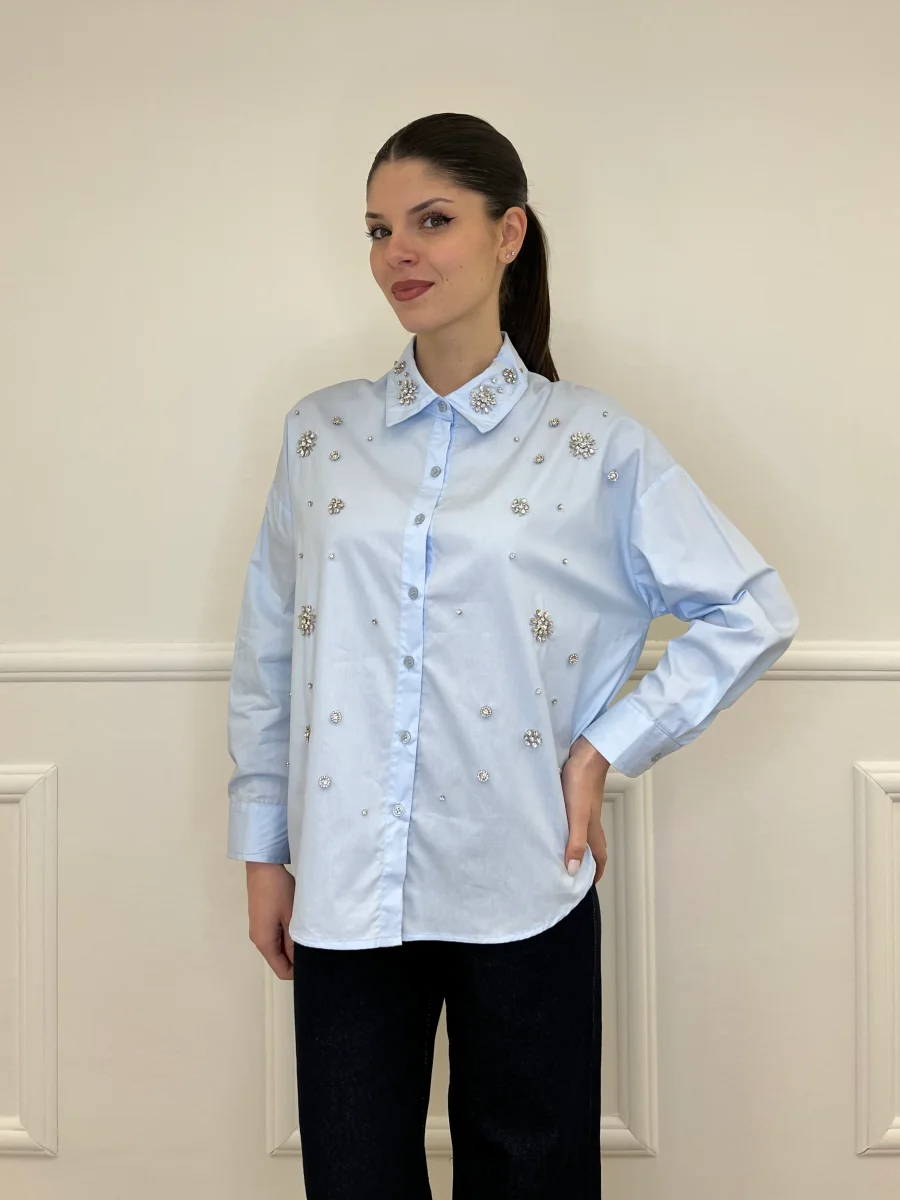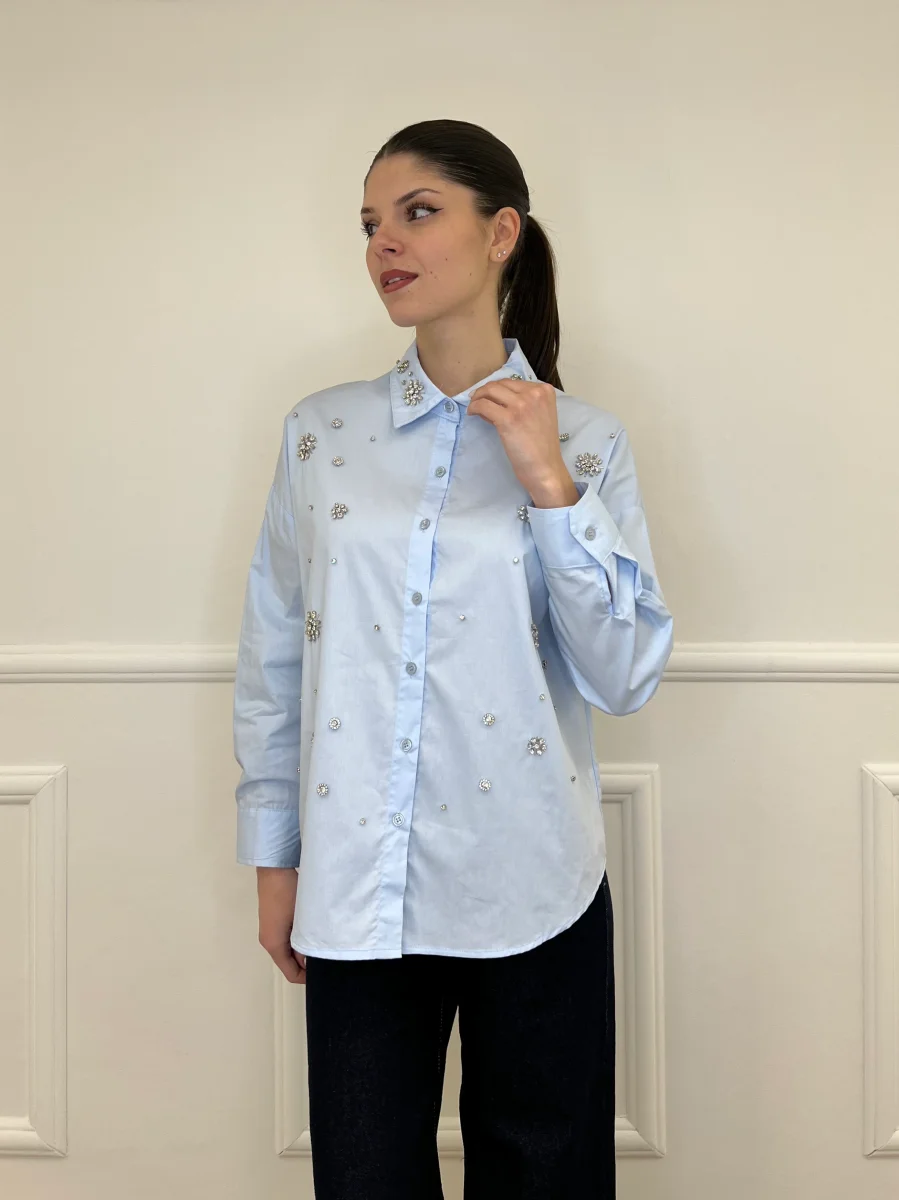 Camicia oversize in popeline di cotone con impreziosita da applicazioni cristalli.