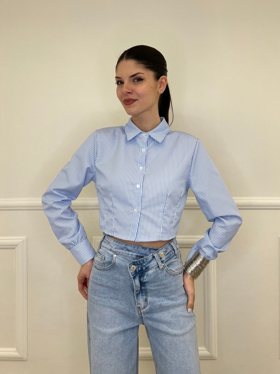 Camicia Crop a Righe 3147 Azzurro