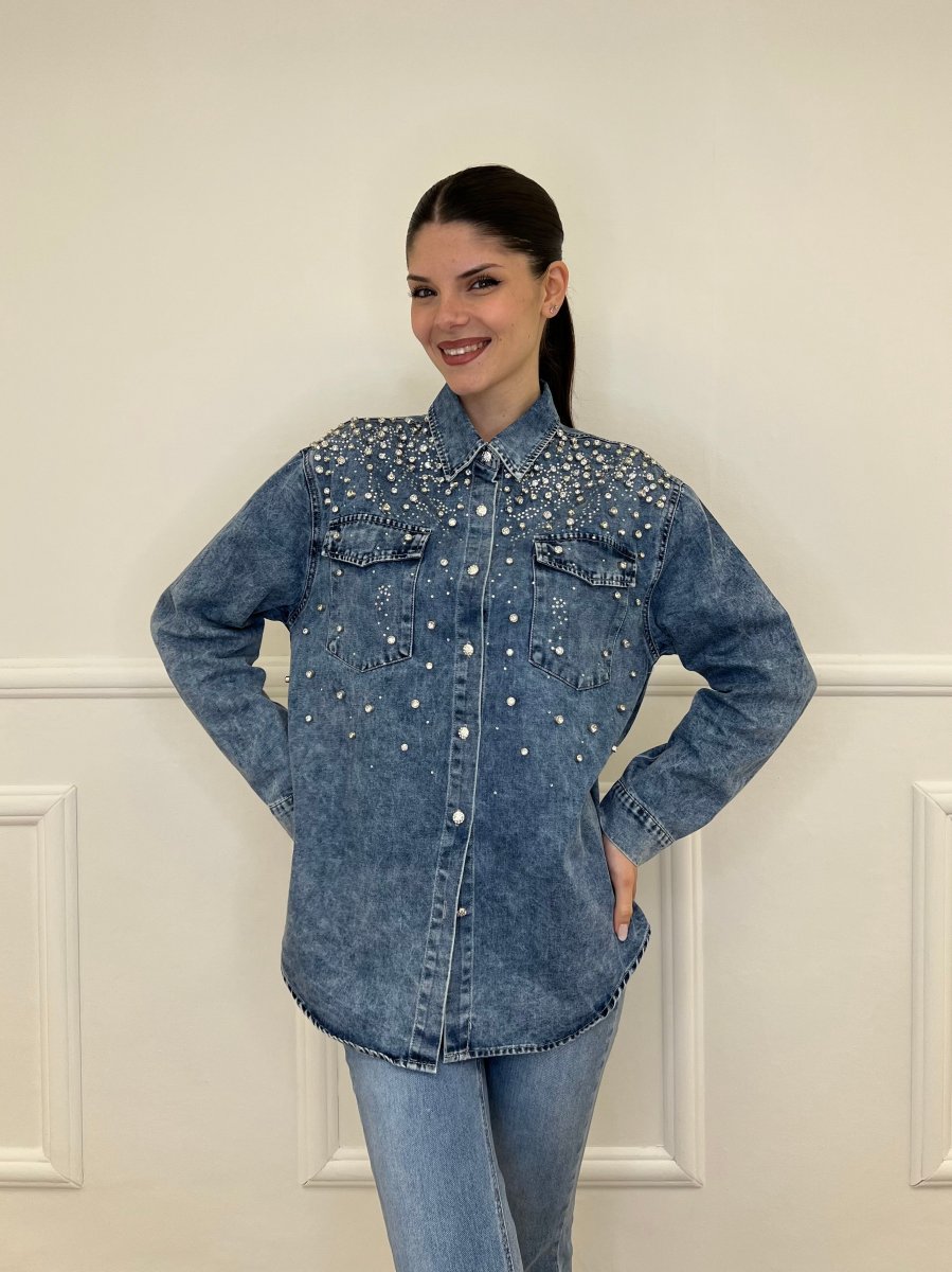 Camicia Denim Delavé Strass 18601