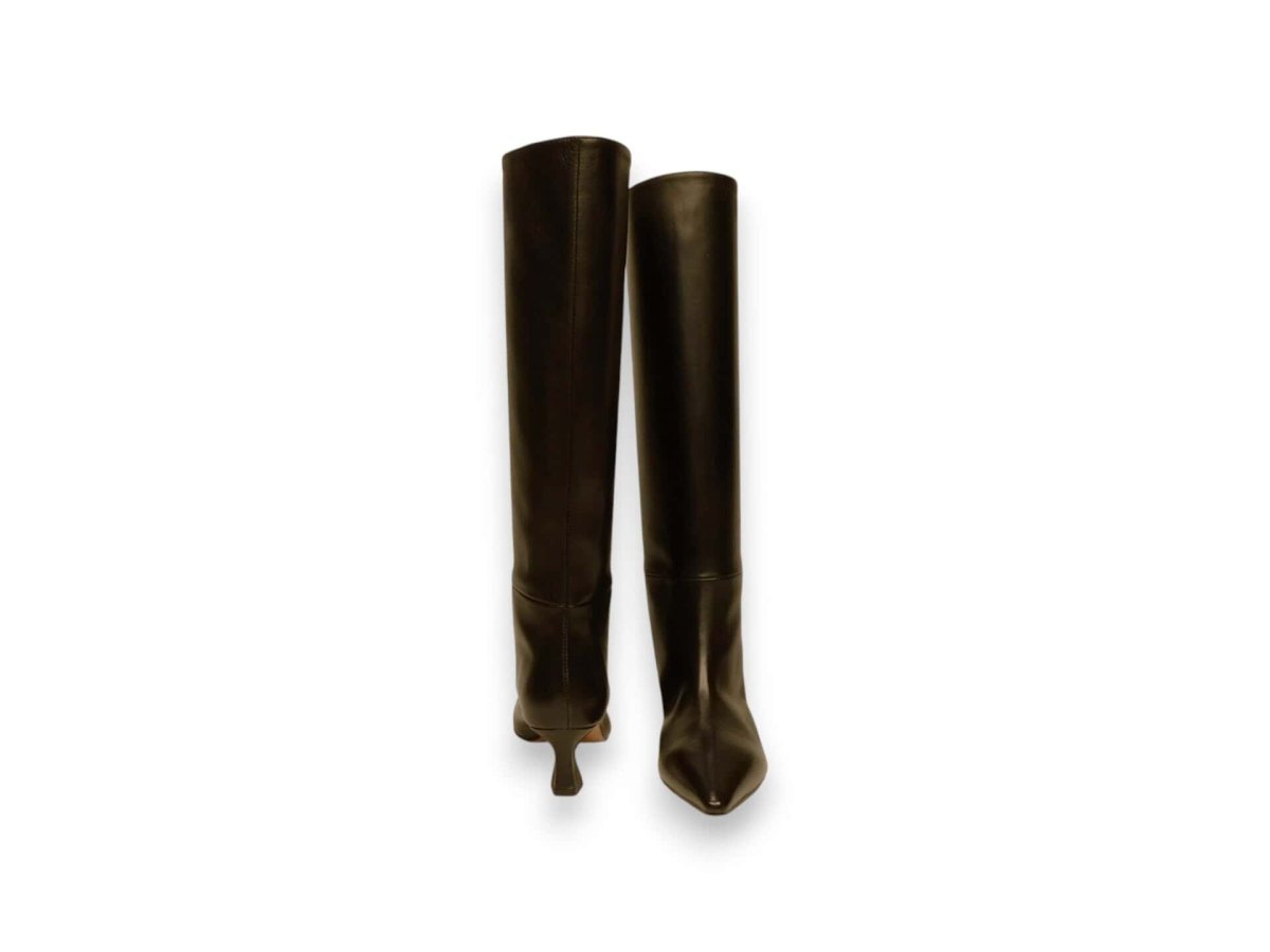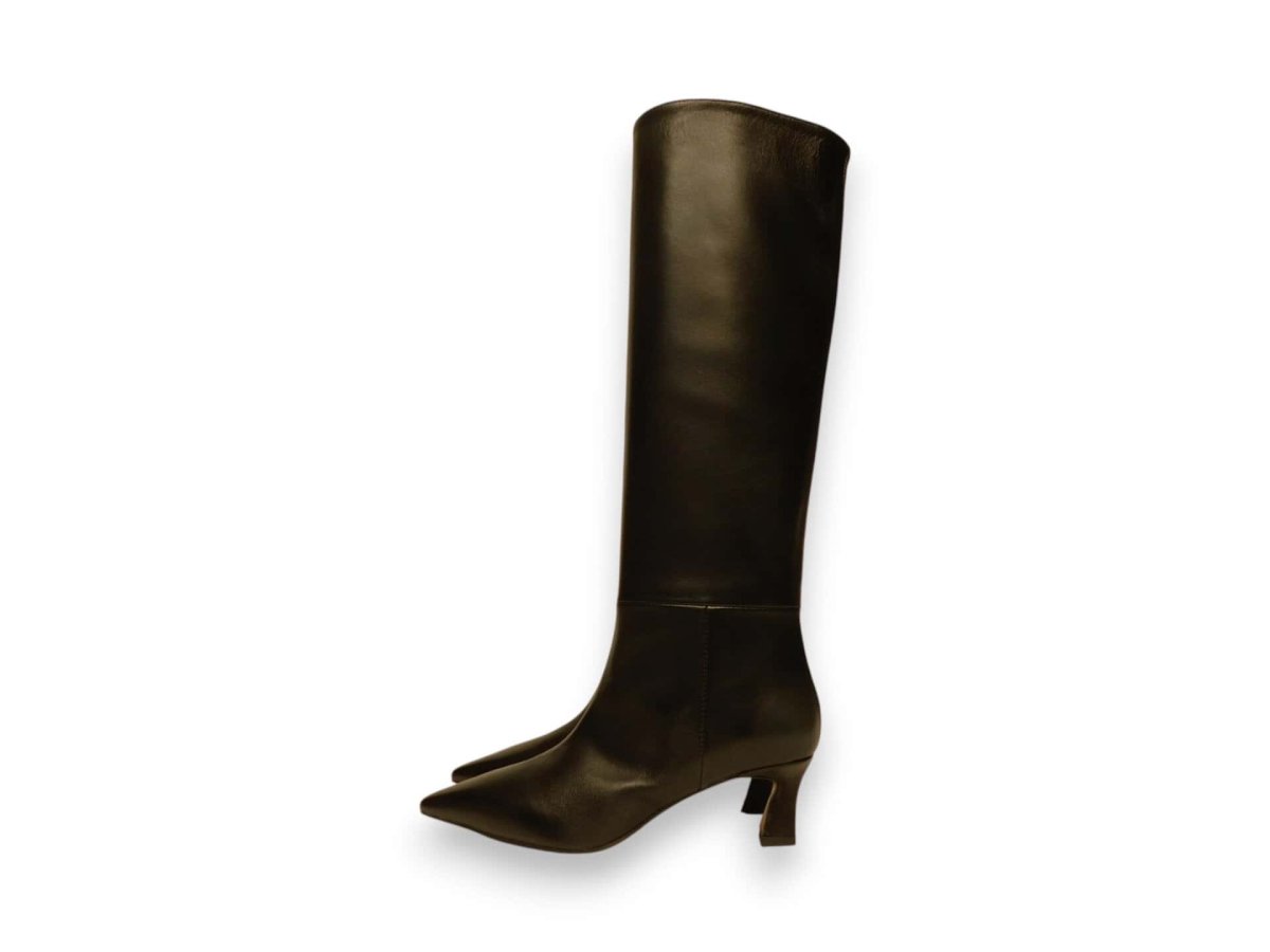 Stivale tubo vitello nero. Tacco 3 cm. Fondo in cuoio. Interno in pelle.