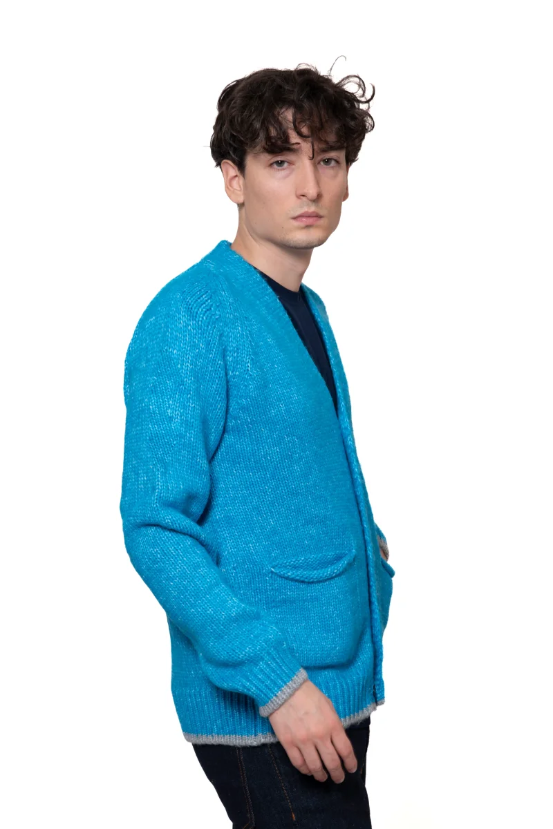 Cardigan 5 bottoni e tasche sul davanti 40% LANA 35% POLIAMMIDE 25% ALPACA prodotto in Italia