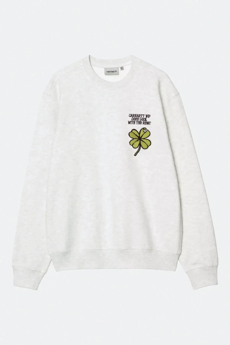 La felpa Clover Sweatshirt รจ caratterizzata da vestibilitร ampia e realizzata in pesante cotone non spazzolato, per una morbida struttura loopback. Sul petto campeggia un ricamo grafico.