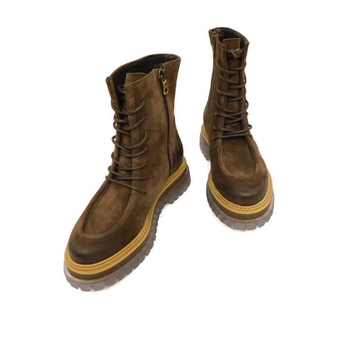 Anfibio in camoscio con cucitura sulla punta. Interno in pelle. Zip laterale. Fondo in gomma.