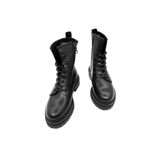 Anfibio in pelle nera. Zip laterale. Fondo in gomma.