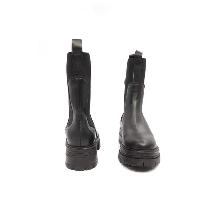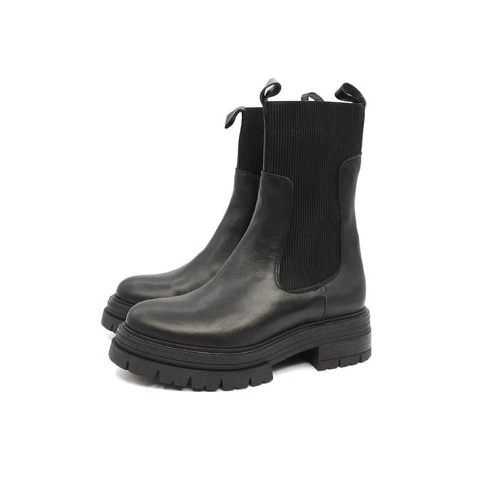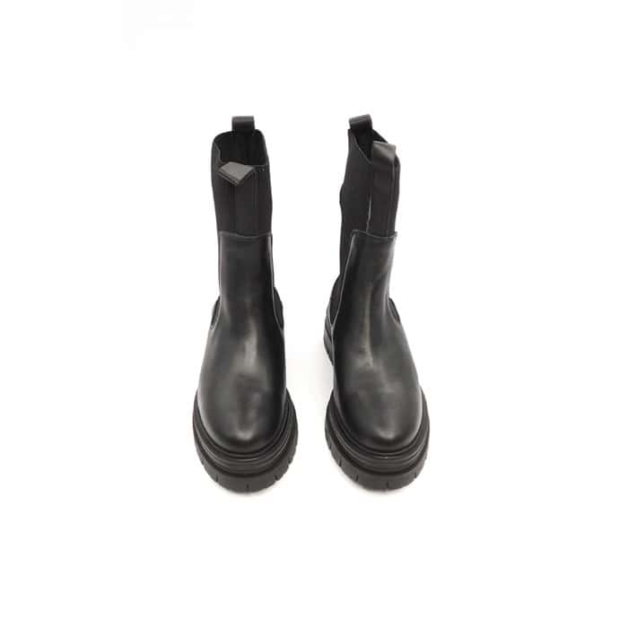 Beatles in vitello nero elasticizzato alla caviglia. Interno in pelle. Fondo carrarmato in gomma.