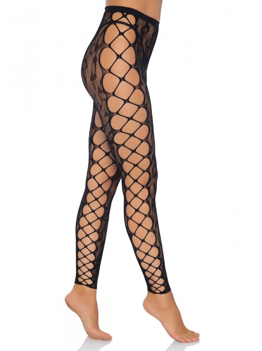 Collant aperti a macchie di leopardo con maxi rete.