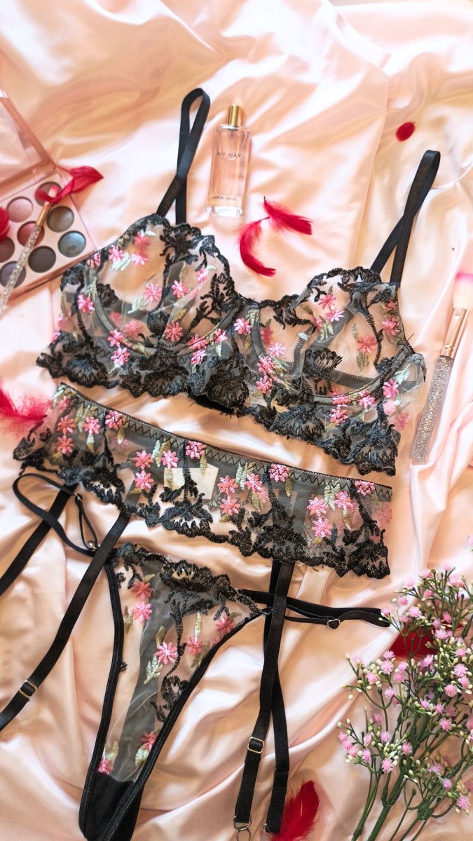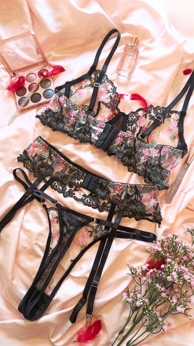 Completino intimo INT623 nero a fiorellini
