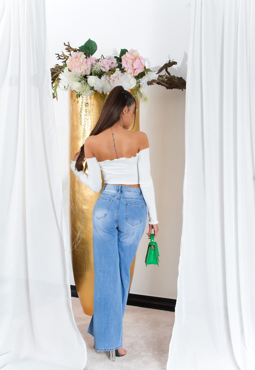 Crop-top con spalle scoperte drappeggiato MA150 Bianco