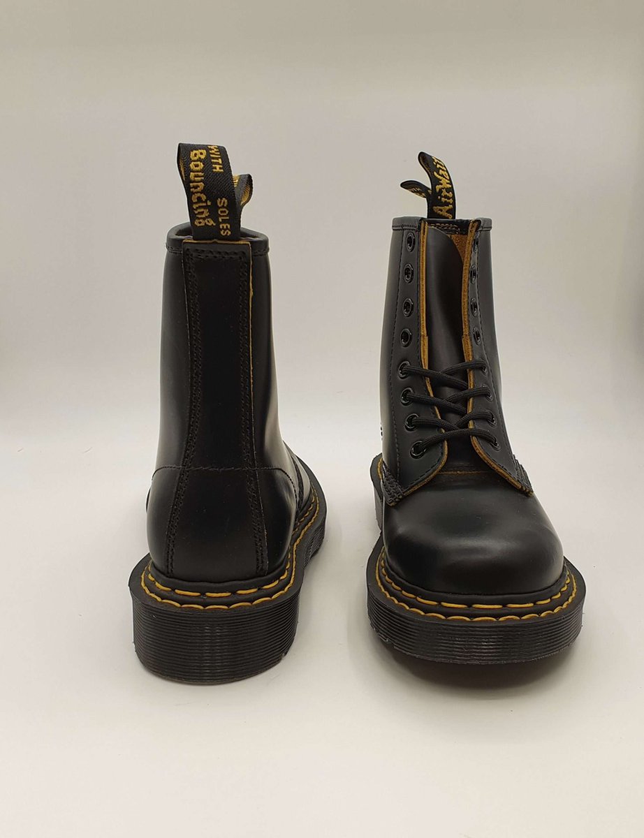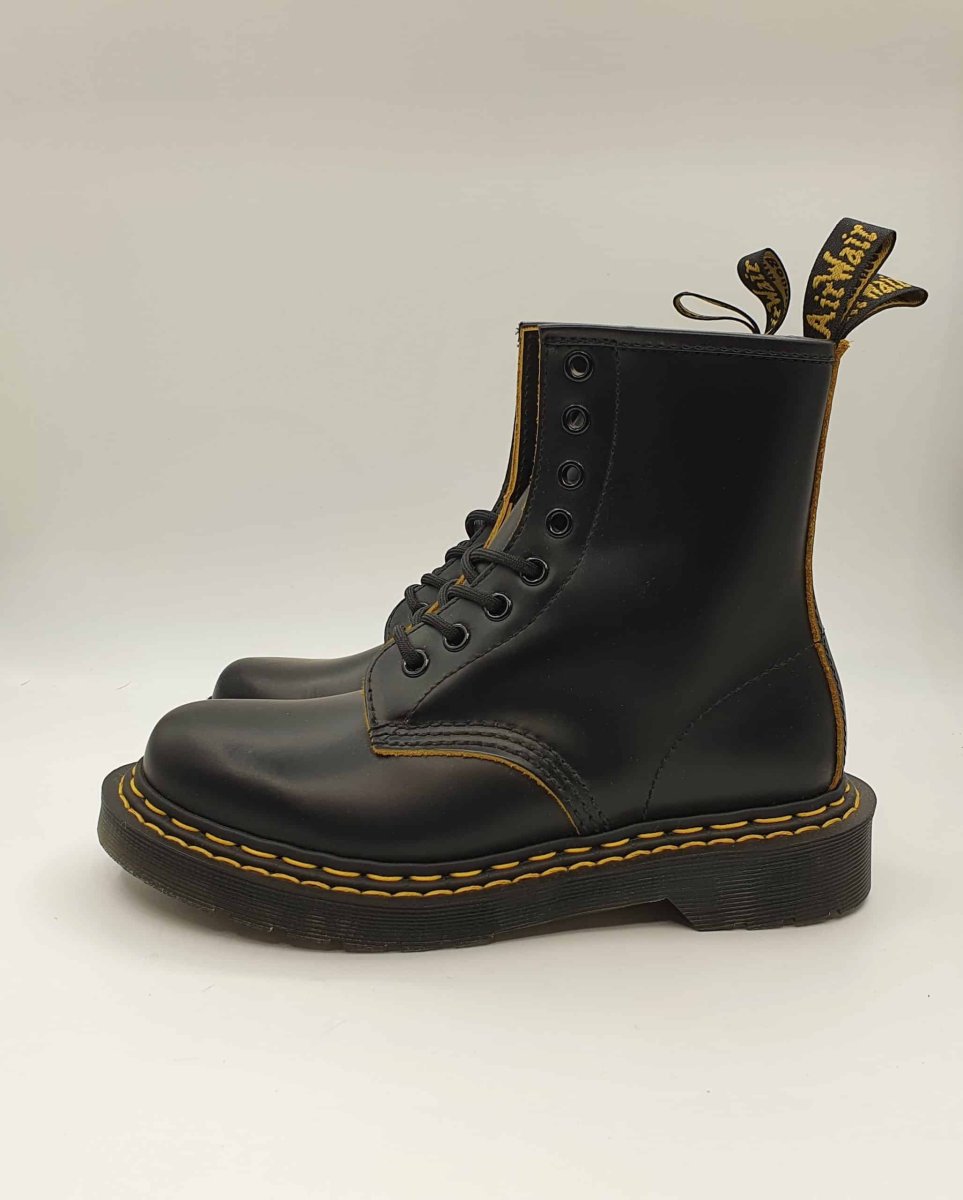 Anfibio in pelle nero con doppia cucitura. Interno in pelle. Fondo in gomma.