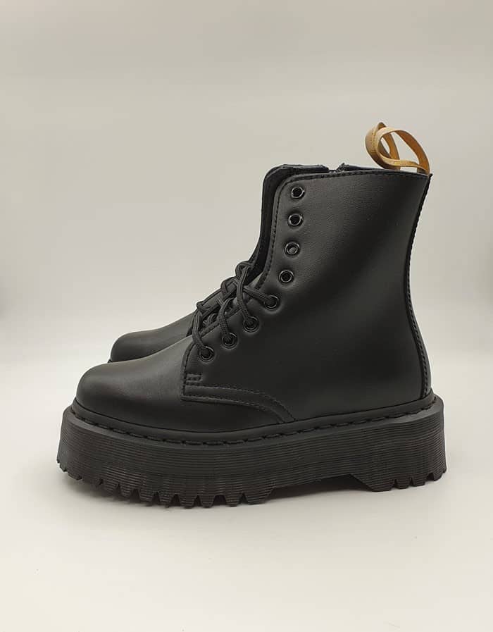 Anfibio in ecopelle nero. Monocolore. Interno in pelle. Fondo platform 3 cm in gomma.